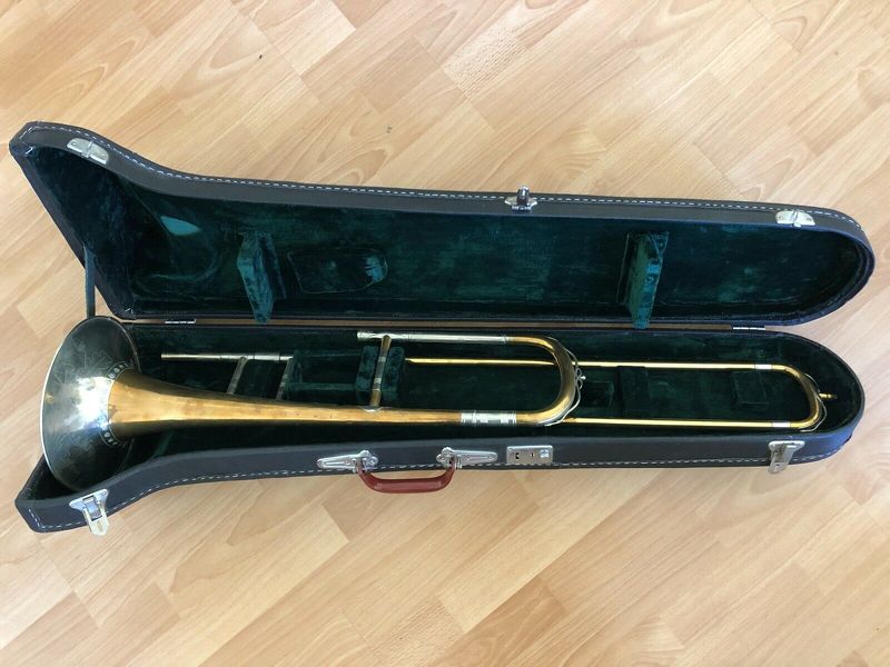 Leider habe ich überhaupt keine Ahnung von der Materie und weiß noch nicht einmal, um welchen Posaunen-Typ oder welche Stimmung es sich handelt! Zudem kann ich keine verlässlichen Angaben zum Alter des Instruments oder der Metallart machen und auch den Zustand nicht beurteilen, etwa, ob alle Instrumententeile Originale sind oder die Mechanik sauber läuft und die Posaune theoretisch spielbar wäre.